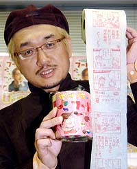 人気漫画家やくみつるの作品の付いたトイレットペーパーが2日、発売された。