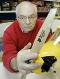 模型飛行機のプロペラを押さえている手は一見何の変哲もないが、