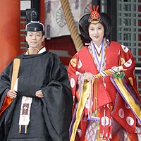 神戸市中央区の生田神社で挙式した。