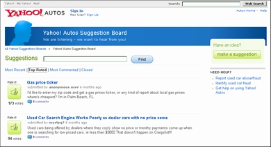 米Yahoo!が、ユーザーからのフィードバック収集に、投票機能を織り込んだ「Yahoo! Suggestion Board」を公開した。