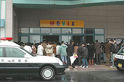 同店の店長は一一〇番通報するとともに、火災報知器を作動させ、建物内にいた客約四百人を避難させたという。